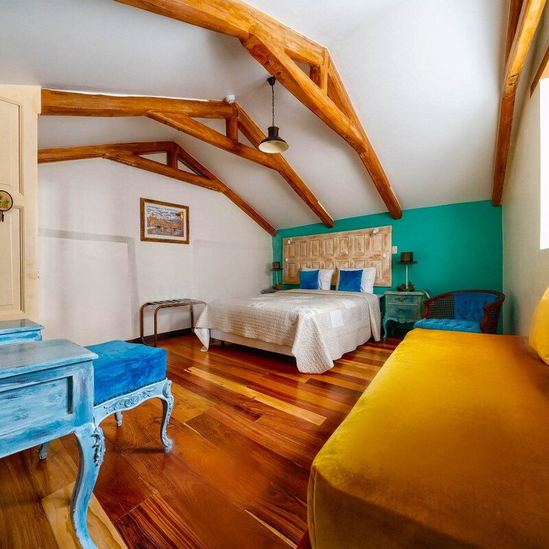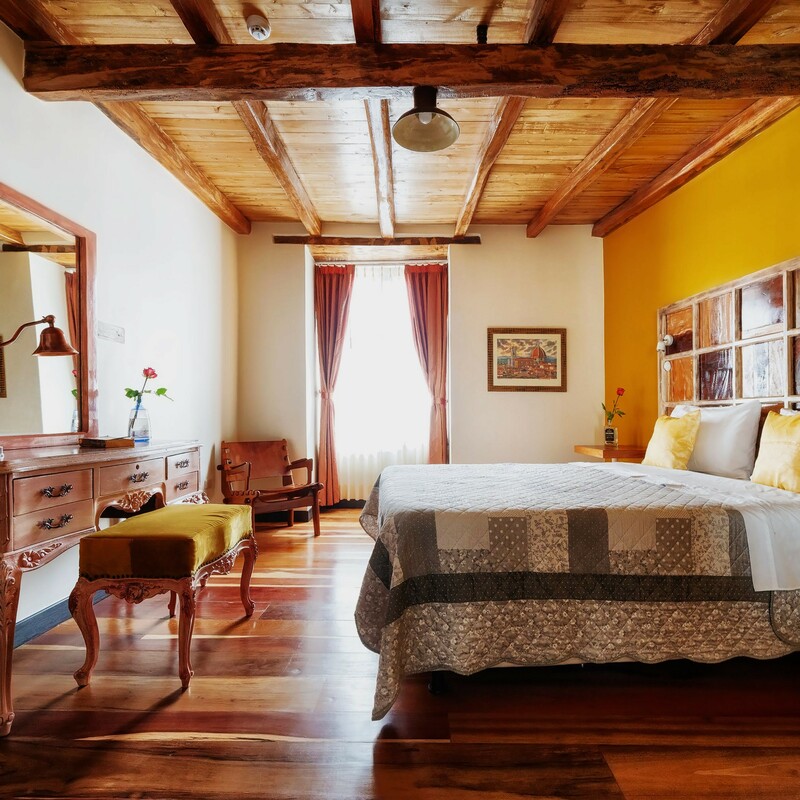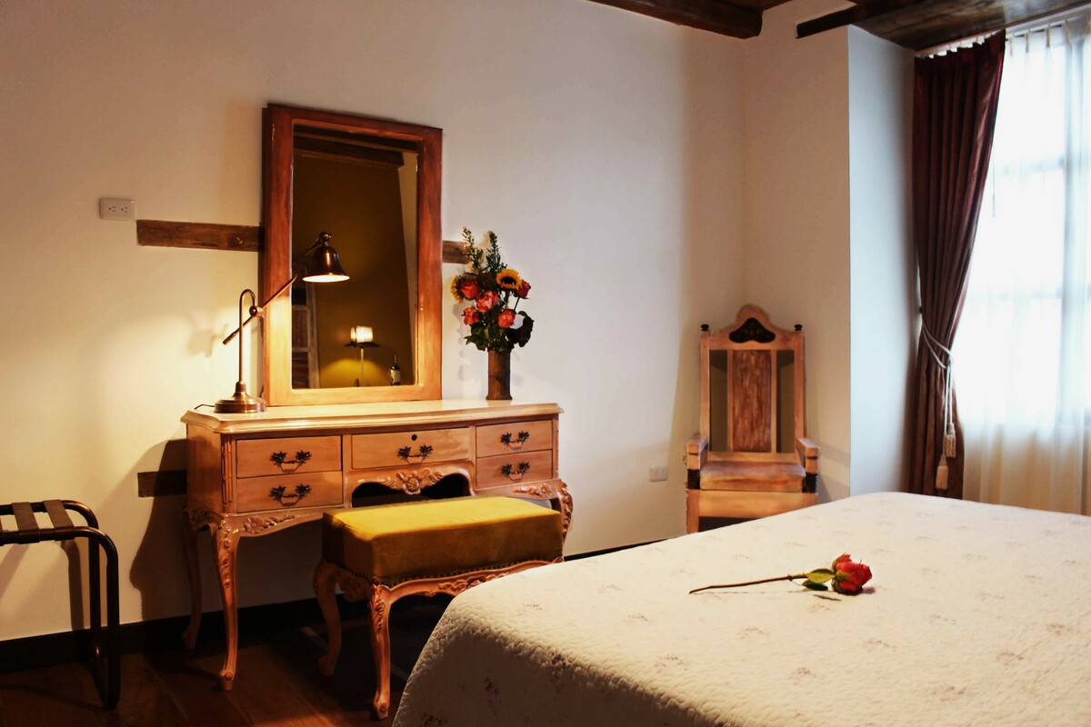 Unwind in the exquisite ambiance of your spacious room at our hotel Quito, tastefully adorned with premium furnishings, soft linens, and thoughtful amenities. The large, comfortable bed at our Quito hotel beckons you to sink into a night of restful sleep, ensuring you wake up refreshed and rejuvenated.